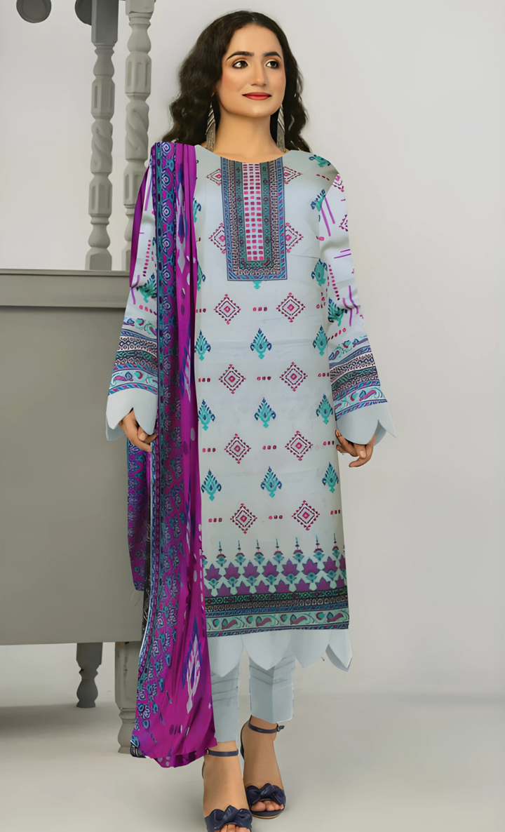 Crafted from high-quality breathable lawn fabric, this suit combines elegance with comfort, making it perfect for both daytime sophistication and evening grace.